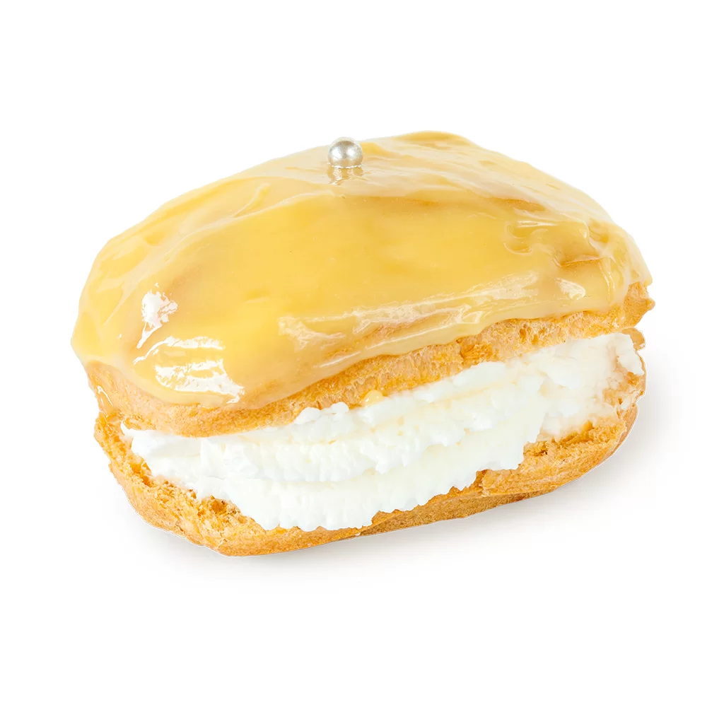 A receita tradicional do nosso Éclair com cobertura de crocante de limão e recheio de chantilly artesanal.